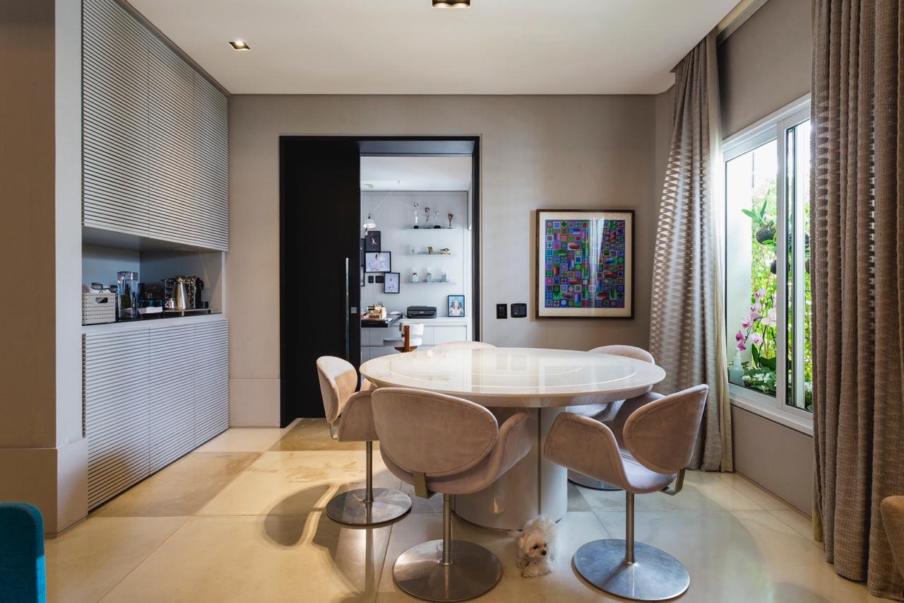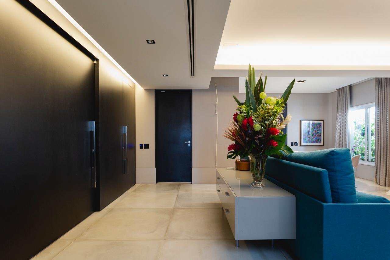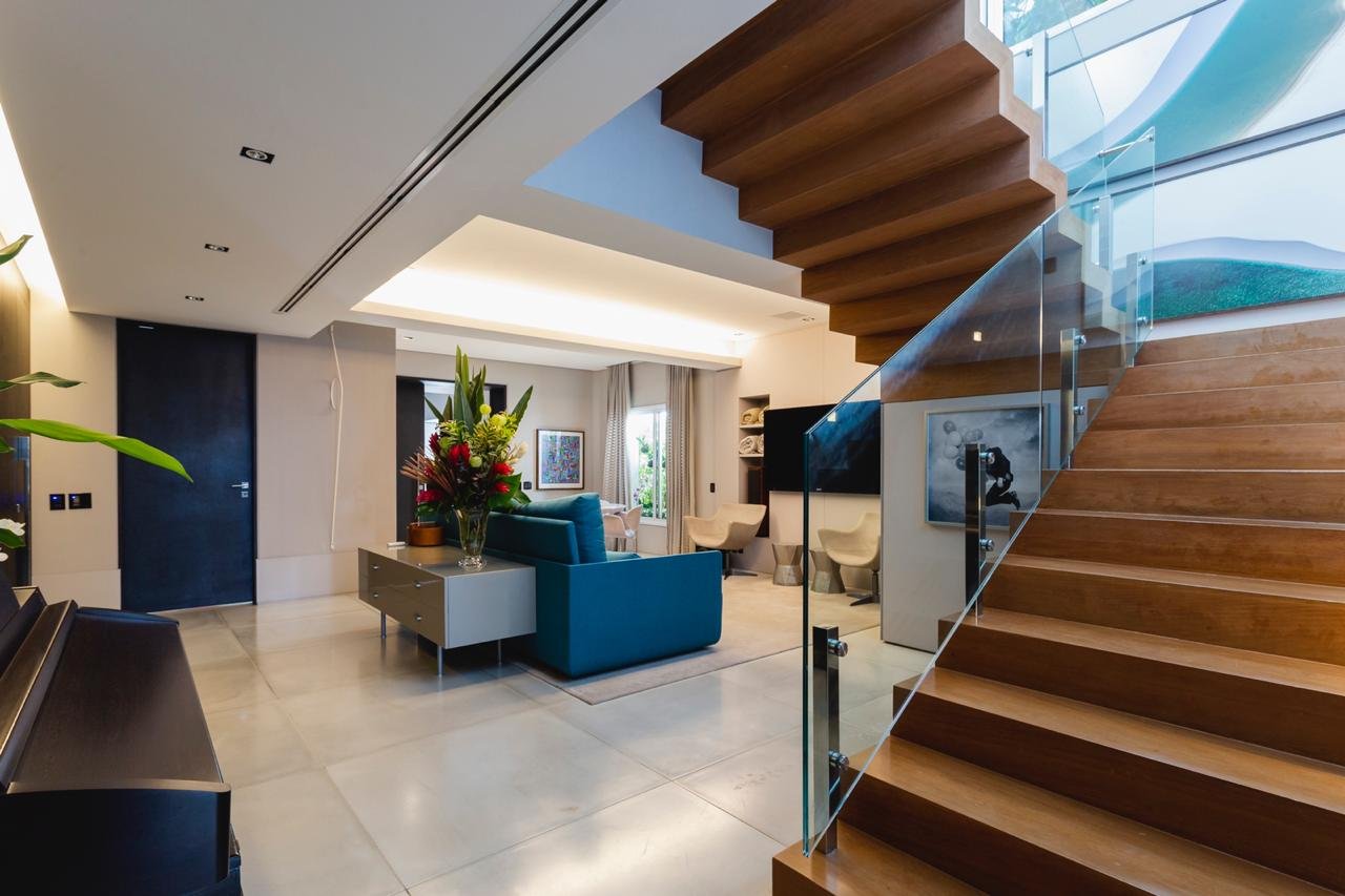 Este espetacular empreendimento, conta com quatro suítes, área externa com piscina, lavabo em ambos os andares, sala de estar, sala de almoço e uma grande sala de estar integrada ao home theater e sala de jantar no piso superior, além de cozinha gourmet equipada com eletrodomésticos viking, armários de suítes Ornare, em um projeto realizado pelo conceituado design Roberto Migoto.
